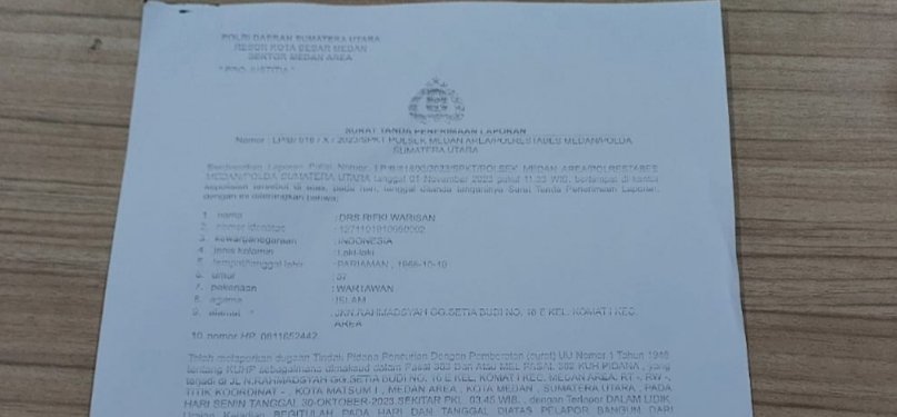 Menurut keterangan Rifki Warisan kepada wartawan, Rabu (1/11/2023), usai membuat laporan kehilangan di Polsek Medan Area, disebutkan, rumahnya dibobol maling pada Senin (30/10/23) dinihari sekitar pukul 03.45 Wib, mengakibatkan kehilangan sepeda motor Yamaha RX King No Pol 4024 AII yang dinilai seharga Rp 16 juta.