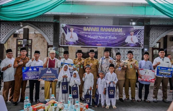 Medan, POL | Pemerintah Kota (Pemko) Medan menyalurkan berbagai bantuan untuk mendukung kemakmuran masjid dan kesejahteraan masyarakat saat menggelar Safari Ramadan di Masjid Nurul Huda, Jalan Bunga Asoka, Kelurahan Asam Kumbang, Kecamatan Medan Selayang, Senin (9/3/2026).