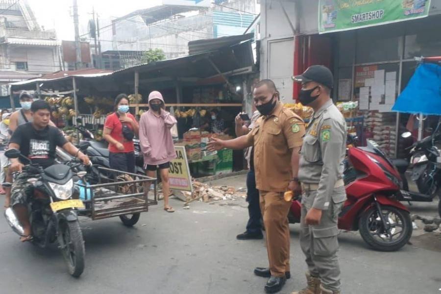 Usai Apel Petugas Satgas Covid-19 melakukan Patroli Protokol Kesehatan dan Pengawasan PPKM Mikro dengan sasaran para pengguna jalan dan masyarakat yang tidak mematuhi Protokol kesehatan/memakai masker. Kali ini Fokus petugas di Pasar Tradisional yang terletak di Jalan Cahaya, Kelurahan Durian Kecamatan Medan Timur.