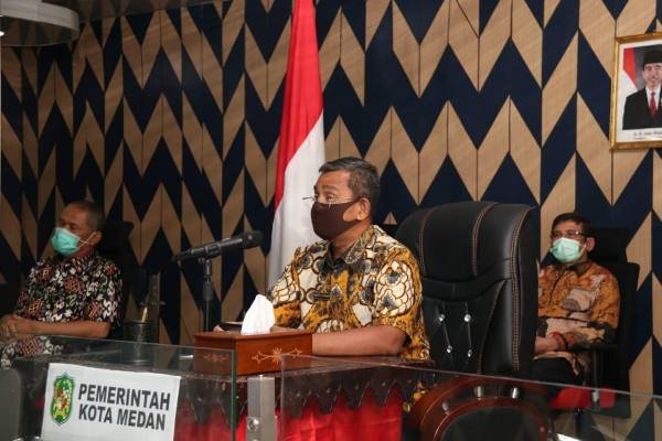 Hal ini dibahas dalam Rapat Refocusing Anggaran Penanganan Covid-19 yang diikuti Sekda Kota Medan Ir Wiriya Alrahman MM melalui sambungan video conference (Vidcon) dengan KPK RI di Command Center Balai Kota Medan, Kamis (30/4/2020). Selain mengenai refocusing anggaran, Vidcon yang diikuti Pemprovsu serta Nupati/Wali Kota/Sekda seluruh kabupaten/kota se-Sumut tersebut juga membahas tentang penyaluran bantuan dalam jaring pengamanan sosial di wilayah Sumut.