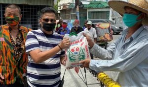 Medan, POL | Komunitas Satu Hati bekerja sama dengan organisasi kemasyarakatan Masyarakat Pancasila Indonesia (MPI) Kota Medan membagikan 500 karung beras dan masker kepada warga kurang mampu yang terdampak wabah virus corona, Minggu (12/04/2020).