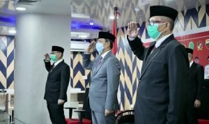 Medan, POL | Dengan penuh khidmat, Pelaksana tugas (Plt) Wali Kota Medan Ir H Akhyar Nasution MSi diwakili Sekda Kota Medan Ir Wiriya Alrahman MM mengikuti Upacara Peringatan Detik-Detik Proklamasi HUT ke 75 Republik Indonesia di Istana Merdeka Jakarta, melalui sambungan virtual di Command Center Balai Kota Medan, Senin (17/8/2020). Upacara kali ini berlangsung berbeda karena dilaksanakan di tengah kondisi pandemi Corona Virus Disease 2019 (Covid-19).