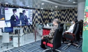 Medan, POL | Sekretaris Daerah (Sekda) Kota Medan Ir Wiriya Alrahman MM, mengikuti Pelantikan dan Sumpah Janji Jabatan Wali Kota Medan Muhammad Bobby Afif Nasution, SE, MM dan Wakil Wali Kota Medan H. Aulia Rachman,SE periode 2021- 2024 secara Virtual di Command Center Kantor Wali Kota, Jumat (26/02/2021). Pelantikan dengan menerapkan Protokol Kesehatan ini berlangsung di Aula Tengku Rizal Nurdin Rumah Dinas Gubernur Sumut.