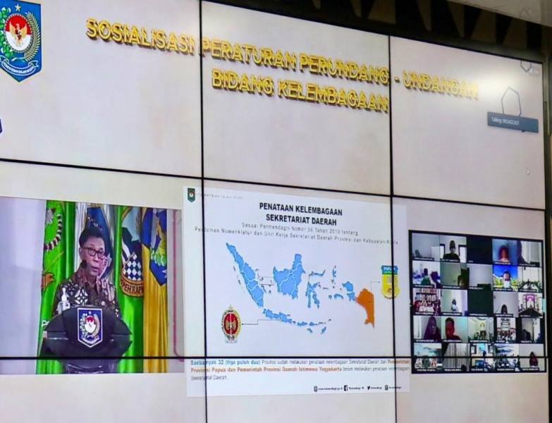 Medan, POL | Sekda Medan, Ir. Wiriya Alrahman, M.M., mengikuti Sosialisasi Peraturan Perundangundangan Bidang Kelembagaan yang digelar Kementerian Dalam Negeri secara dalam jaringan (daring) dan luar jaringan (luring), Kamis (10/6/2021) dari ruang Command Center Kantor Wali Kota Medan.
