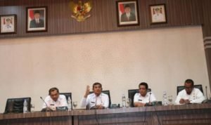 Medan, POL | Wali Kota Medan Drs H T Dzulmi Eldin S MSi MH diwakili Sekda Ir Wiriya Alrahman MM memimpin Rapat Koordinasi dan Evaluasi Penanganan Banjir, Transportasi dan Persampahan di Ruang Rapat III Balai Kota Medan, Rabu (31/7/2019). Rapat ini digelar untuk mendengar sekaligus mengetahui berbagai progres serta rencana organisasi perangkat daerah (OPD) terkait dalam mengatasi serta mengantisipasi ketiga permasalahan tersebut.