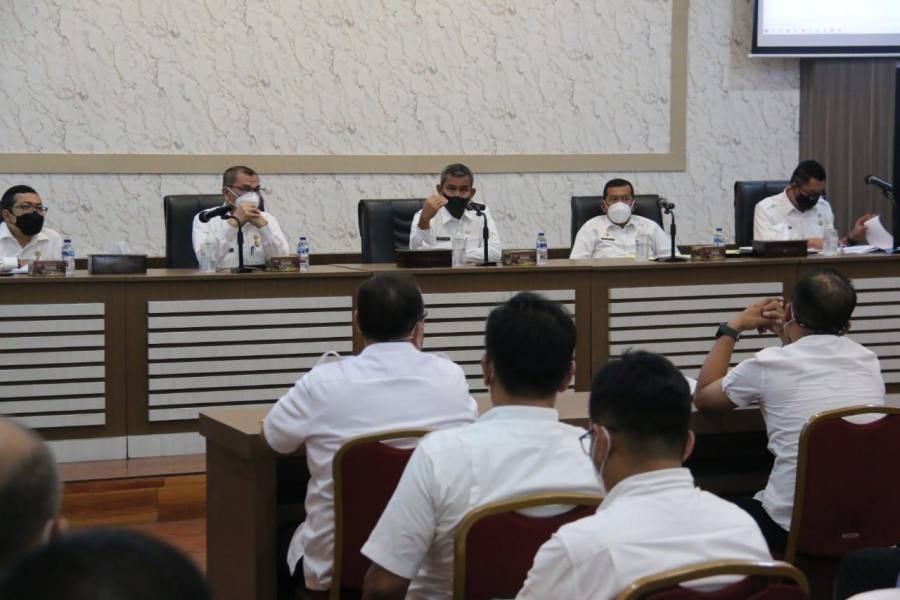 Medan, POL | Wali Kota Medan, Bobby Nasution diwakili Sekda Kota Medan, Wiriya Alrahman memimpin rapat evaluasi pasca pelimpahan sebagian kewenangan pengelolaan sampah kepada Camat di Kantor Wali Kota Medan, Rabu (3/11/2021).