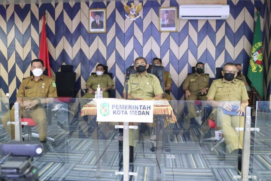 Medan, POL | Sekda Medan, Wiriya Alrahman mengikuti Rapat Validasi Tambahan Penghasilan Pegawai (TPP) yang diselenggarakan Kementerian Dalam Negeri Republik Indonesia (Kemendagri) secara daring, Senin (27/1/20212) dari Ruang Command Center Kantor Wali Kota Medan.