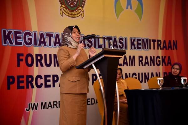 Medan, POL | Sekretaris Daerah Pemerintah Provinsi (Sekdaprov) Sumatera Utara (Sumut) Sabrina menekankan pentingnya peran perempuan dalam pembangunan bangsa, saat membuka Kegiatan Fasilitasi Forum Partisipasi Publik untuk Kesejahteraan Perempuan dan Anak (Puspa) di hotel J.W Mariot, Senin (4/11/2019). Menurutnya perempuan punya peran penting dalam membangun Sumber Daya Manusia (SDM) yang berkualitas.