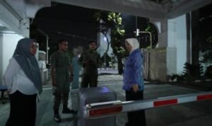 Sabrina kemudian memeriksa seluruh akses masuk kantor tersebut dan memastikan setiap titik penjagaan berfungsi. Sekda juga menguji fungsi alat gerbang deteksi yang ada pada pintu masuk lobby Kantor Gubernur.