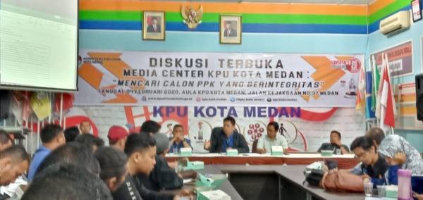 Medan, POL | Komisi Pemilihan Umum (KPU) Medan menggelar diskusi terbuka dengan para Insan Media yang tergabung dalam Media Center KPU Medan dengan tema “Mencari Calon PPK Yang Berintegritas”.