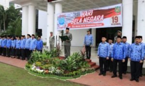 Medan, POL | Memperingati Hari Kesadaran Nasional dan Hari Bela Negara (HBN) ke 71 Tahun 2019, Sekretaris Daerah (Sekda) Kota Medan Ir Wiriya Alrahman MM bertindak sebagai Inspektur upacara (Irup) di Halaman Depan Balai Kota Medan, Selasa (17/12/2019). Kedua hari peringatan tersebut menjadi momentum untuk mengajak, menumbuh kembangkan serta menanamkan rasa kesadaran dan kecintaan serta kepedulian elemen masyarakat dalam menjaga keamanan dan keutuhan NKRI termasuk para aparatur sipil negara (ASN).