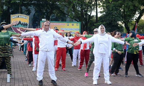 Medan, POL | Gubernur Sumatera Utara (Sumut) Edy Rahmayadi dan Ketua TP PKK Sumut Nawal Lubis senam pagi bersama dengan ribuan masyarakat di Lapangan Benteng, Jalan Imam Bonjol Medan, Minggu (7/8/2022), dalam rangka menyamarakkan HUT ke-77 Kemerdekaan RI.