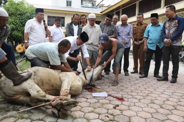Medan, POL | Sebagai bentuk perhatian terhadap insan pers di Sumatera Utara (Sumut), Wakil Gubernur (Wagub) Sumatera Utara (Sumut) Musa Rajekshah menyerahkan satu ekor sapi kurban kepada pengurus Persatuan Wartawan Indonesai (PWI) Sumut, Senin (12/8/2019). Diharapkan, daging kurban yang telah disembelih nantinya tersalurkan khususnya kepada kaum duafa.