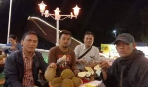 Flando Pardede dalam rangka memperingati hari Pers Nasional ke -74 mengajak para rekan-rekan wartawan di kota Medan untuk menikmati buah durian di tempat usahanya.