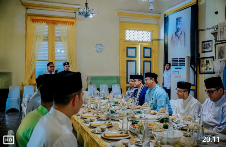 Medan, POL | Usai mengikuti Peringatan Maulid Nabi Muhammad SAW bersama ribuan warga di Masjid Raya Al Mashun, Wali Kota Medan Bobby Nasution bersilaturahmi sekaligus makan siang bersama para sultan se-Sumatera Utara di Istana Maimun, Rabu (18/9/2024).