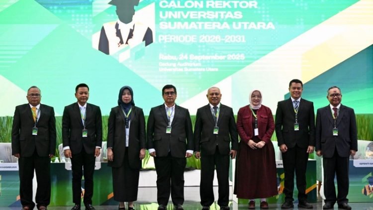 Medan, POL | Delapan calon Rektor Universitas Sumatera Utara (USU) periode 2026–2031 memaparkan program kerja terbaiknya dalam audisi calon rektor yang digelar di Auditorium USU, Padang Bulan, Medan, Rabu (24/9/2025).