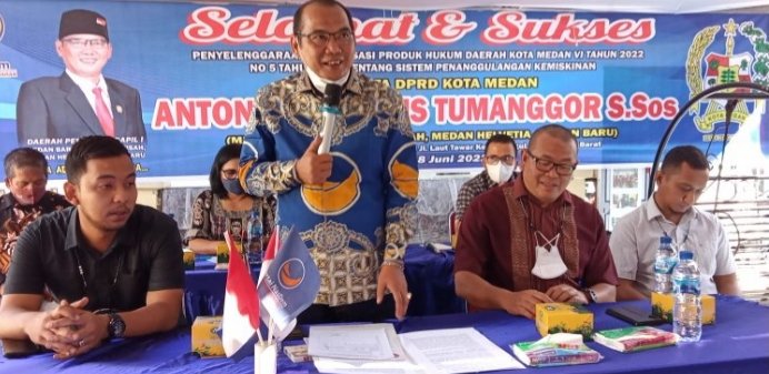 Hal itu disampaikan Antinius saar menggelar Sosialisasi Perda No.5/2015 Tentang Sistem Penanggulangan Kemiskinan di Jalan Danau Laut Tawar No.1 Kelurahan Sei Agul Kecamatan Medan Barat, Sabtu (18/6/2022).