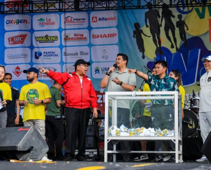 Medan, POL | Penarikan nomor undian hadiah doorprize yang dilakukan Wali Kota Medan Bobby Nasution menambah kemeriahan dan keseruan kegiatan Fun Walk yang berlangsung di Lapangan Benteng, Minggu (12/11/2023).