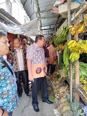 Medan, POL | Direktur Utama (Dirut) Perusahaan Daerah (PD) Pasar Kota Medan Rusdi Sinuraya meninjau langsung pasar-pasar di bawah naungan PD Pasar Kota Medan, Kamis (29/08/2019).