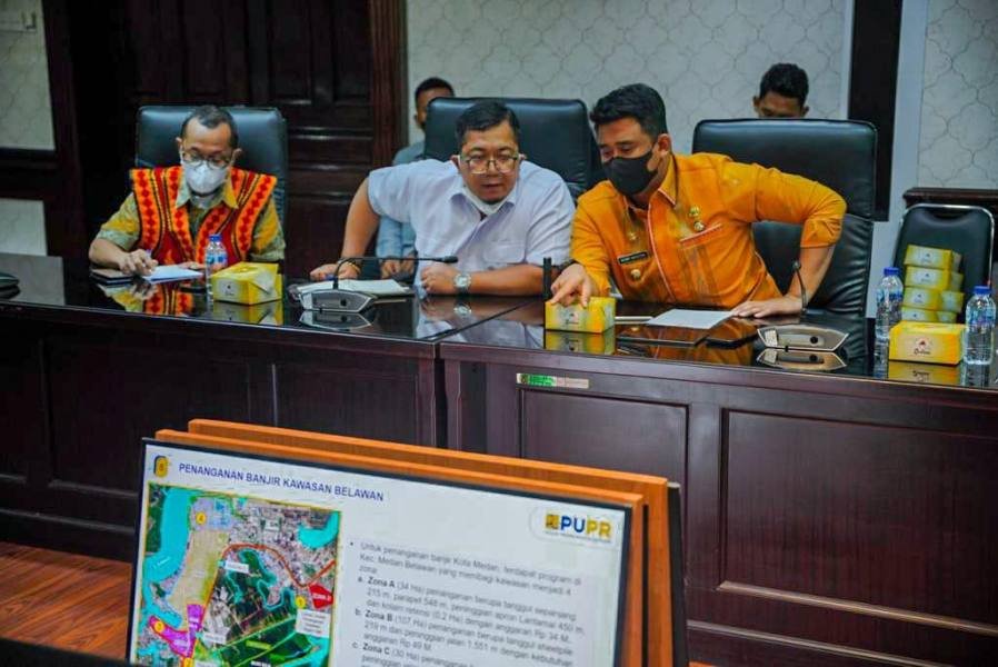 Hal ini terungkap saat Wali Kota Medan Bobby Nasution memimpin Rapat Laporan Peninjauan Lapangan Terkait Banjir Rob di kawasan Kecamatan Medan Belawan oleh Kementerian Pekerjaan Umum dan Perumahan Rakyat (PUPR) di Ruang Rapat I Kantor Wali Kota Medan, Jumat (12/8/2022).