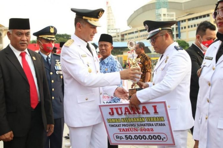 Medan, POL | Kelurahan Tanjung Mulia Hilir Kecamatan Medan Deli Kota Medan menjadi Juara I Lomba Desa/Kelurahan Terbaik Tingkat Sumatra Utara. Prestasi membanggakan ini diumumkan dalam rangkaian Upacara Penurunan Bendera 17 Agustus 2022 Provinsi Sumatra Utara di Lapangan Astaka, Jalan Willem Iskandar, Rabu (17/8) petang. Wagubsu H. Musa Rajekshah bertindak sebagai Inspektur Upacara juga menyerahkan hadiah atas prestasi membanggakan itu kepada Lurah Tanjung Mulia Hilir, Hendra Syahputra.