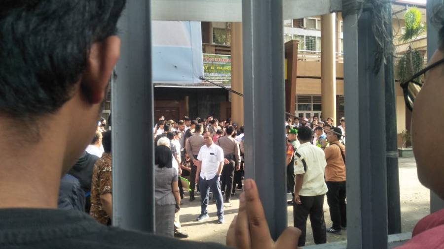 Pantauan wartawan di lokasi beberapa petugas kepolisian berjaga di area pagar depan kampus. Pihak keamanan kampus juga berjaga dengan menutup pagar kampus. Terlihat pula sejumlah mahasiswa berlarian di area kampus.