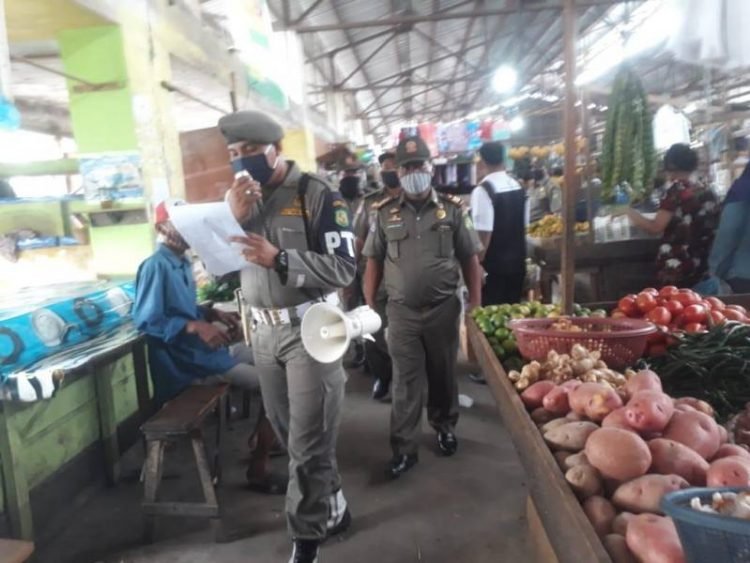 Medan, POL | Pemko Medan terus gencar melakukan penertiban dan sosialisai terhadap ketaatan dan kepatuhan kepada Perwal No 11/2020  di berbagai Pasar yang ada di Kota Medan. Selasa (23/6/2020) kemarin, Satpol PP Kota Medan kembali melakukan penertiban masker, kali ini berfokus di 6 pasar yang ada yaitu Pasar Sentosa Baru, Pasar Pendidikan, Pasar Petisah, Pasar Glugur, Pasar Suka Ramai, dan Pasar Cemara.
