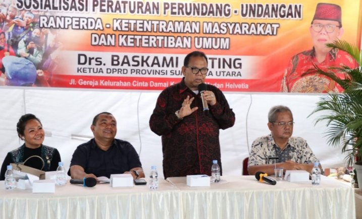 Medan, POL | Ketua DPRD Sumatera Utara Baskami Ginting mengajak segenap warga Kelurahan Cinta Damai, Kecamatan Medan Helvetia untuk kompak menjaga lingkungan dari peredaran narkoba.