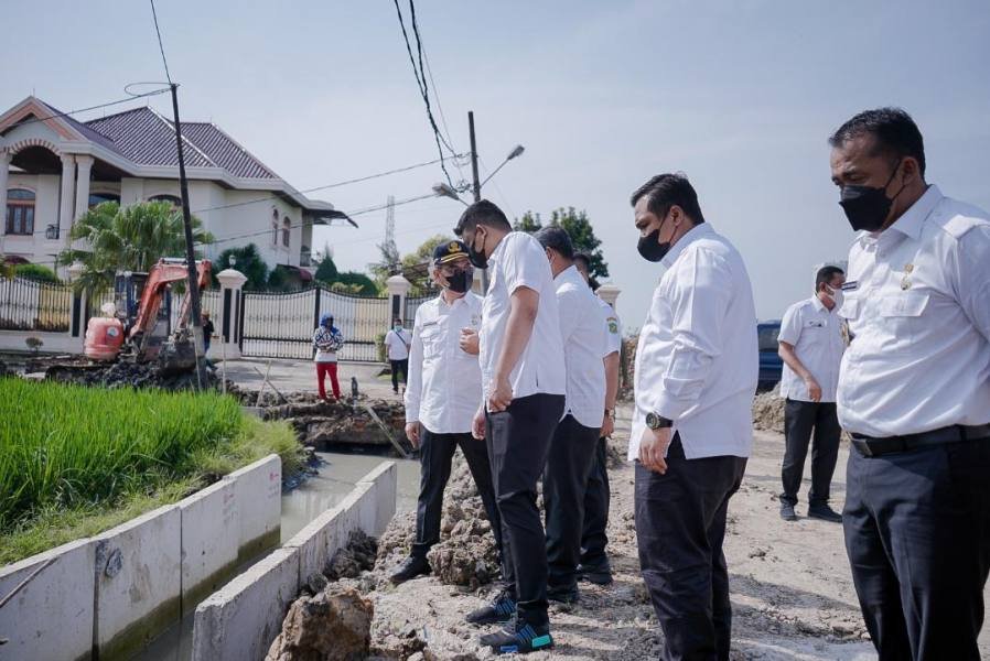 Peninjauan dilakukan Bobby Nasution didampingi Wakil Wali Kota H Aulia Rachman, Sekda Kota Wiriya Alrahman, Asisten serta sejumlah pimpinan OPD. Begitu tiba di lokasi, Bobby langsung mengecek apa yang menjadi penyebab lambatnya penyelesaian pemasangan U-Ditch tersebut.