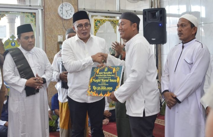 Medan, POL | Selama bulan suci Ramadhan Pemko Medan secara rutin melakukan safari ramadhan dengan mengunjungi Masjid-Masjid yang ada di Kota Medan. Seperti yang dilakukan Wali Kota Medan Bobby Nasution diwakili Wakil Wali Kota Medan Aulia Rachman dengan mengunjungi Masjid Nurul Iman dijalan Rumah Potong Hewan Kecamatan Medan Deli, Senin (27/3/2023).