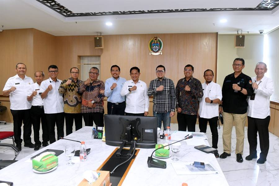 Pj Gubernur Sumut Hassanudin menerima Kunjungan Kerja Reses Komisi II DPR RI ke Provinsi Sumut di Ruang Rapat I, Lantai 2, Kantor Gubernur Sumut, Jalan Diponegoro No. 30, Medan, Rabu (6/12/2023). (Diskominfo Sumut)