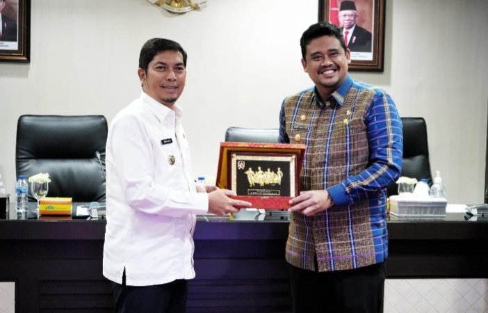 “Alhamdulillah, secara proporsi dan kekuatan anggaran Pemko Medan bisa melakukan pembangunan secara massif. Anggaran kami tahun ini Rp7,86 triliun. Anggaran ini bisa untuk membangun sekaligus mengubah wajah Kota Medan kalau difokuskan pada prioritas yang telah ditetapkan,” ungkap Bobby Nasution saat menerima kunjungan kerja Wali Kota Sawahlunto Deri Asta dan rombongan, Jumat (9/6) di Ruang Rapat I Kantor Wali Kota Medan.