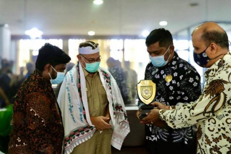 Medan, POL | Dengan penuh keakraban dan kekeluargaan, Pelaksana tugas (Plt) Wali Kota Medan Ir H Akhyar Nasution MSi menerima kedatangan Pengurus Parisada Hindu Dharma Indonesia (PHDI) Kota Medan di Balai Kota Medan, Senin (31/8/2020). Selain bersilaturahmi, tujuan kehadiran PHDI untuk memakaikan Udeng (ikat kepala khas masyarakat Hindu Pulau Dewata) serta Ponade (kain sari khas India) sebagai ungkapan syukur atas kesembuhan Akhyar pasca terkonfirmasi terpapar Corona Virus Disease 2019 (Covid-19) beberapa waktu lalu.