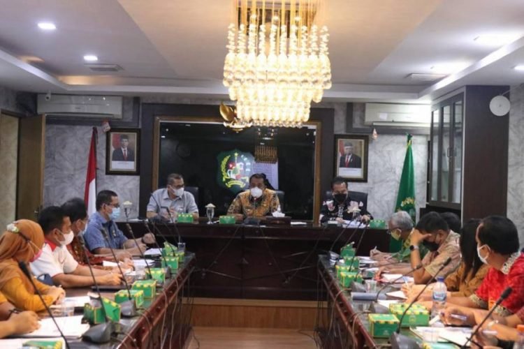 Medan, POL | Wali Kota Medan, Muhammad Bobby Afif Nasution, S.E., M.M., diwakili Wakil Wali Kota, H. Aulia Rachman, S.E. memimpin rapat membahas Pasien Bantuan Iuran (PBI) ) dan Unregister, Jumat (19/3/2021) di Ruang Rapat II, kantor wali kota. Pembahasan bermuara pada tujuan untuk meningkatkan pelayanan kesehatan kepada masyarakat Medan.