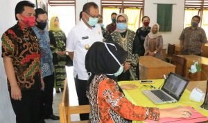 Medan, POL | Pelaksana Tugas (Plt) Wali Kota Medan Ir H Akhyar Nasution MSi menyaksikan proses belajar secara jarak jauh berbasis dalam jaringan (Daring) di SMP Negeri 2 Medan Jalan Brigjend Katamso No 51, Kampung Baru, Kecamatan Medan Maimun, Kamis (16/7/2020). Dalam proses daring ini guru memberikan materi pelajaran menggunakan aplikasi class online kepada para murid yang berada di rumahnya masing-masing. Langkah ini dilakukan karena proses belajar tatap muka belum bisa dilakukan mengingat pandemi Corona Virus Disease 2019 (Covid-19) di Kota Medan belum berakhir.