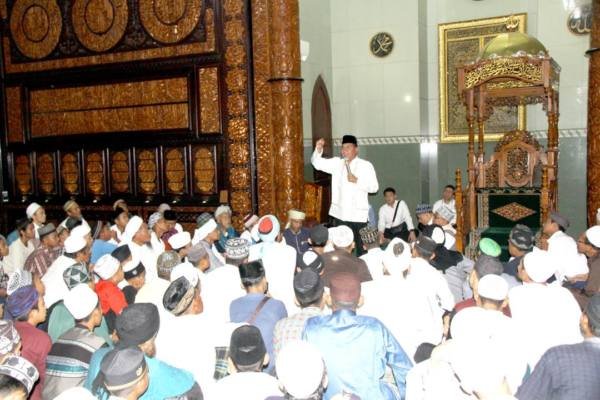 “Jangan sampai ulama mengejar umaro. Sudah terbalik itu, bisa porak poranda bangsa ini. Untuk itu saya yang datang ke sini, apa yang bisa saya lakukan. Karena bukan ulama yang datang, kami yang mendatangi ulama,” tambah Gubernur.
