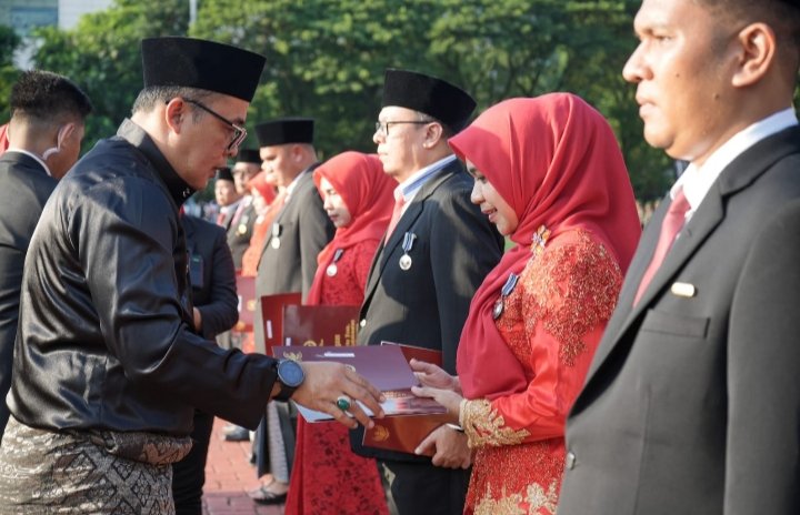 Upacara Penurunan Bendera Diwarnai Pemberian Tanda Kehormatan Satyalancana Satya pada PNS Pemko Medan