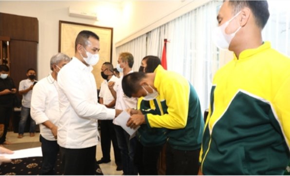 Sebelumnya dalam kegiatan ini, Wagub Sumut Musa Rajekshah berjanji akan memberikan bonus kepada atlet berprestasi dan akan mencarikan pekerjaan kepada atlet yang berhasil mendapatkan medali emas. Selain itu, kepada para atlet, pelatih dan wasit yang berangkat dalam PON Papua juga diberikan tali asih. (POL/isvan)