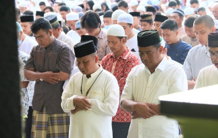 Medan, POL | Wakil Ketua DPRD Provinsi Sumatera Utara, Rahmansyah Sibarani menjalani Salat Idul Adha 1443 H/2022 M bersama ribuan masyarakat di halaman Masjid Taqwa Cabang Kampung Dadap Jalan Mustafa, Kecamatan Medan Timur, Kota Medan, Sabtu (9/7/2022)