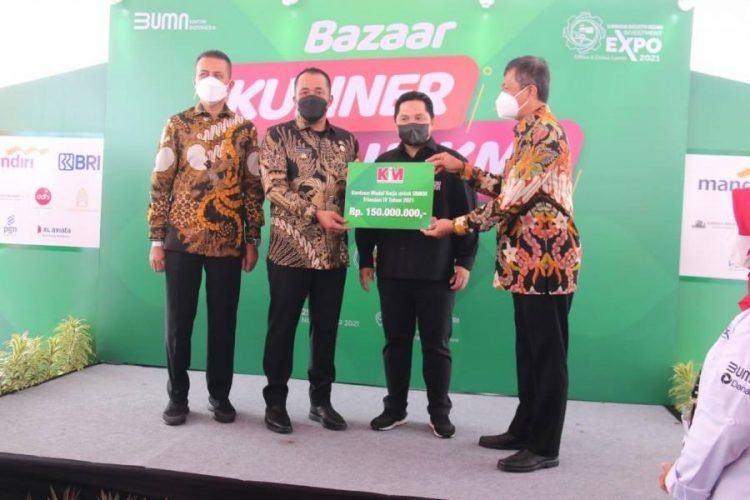 Menteri BUMN, Erick Thohir juga turut meresmikan pameran bazar tersebut dan langsung meninjau produk UMKM Medan di sejumlah stand-stand mulai dari makanan hingga produk fashion.