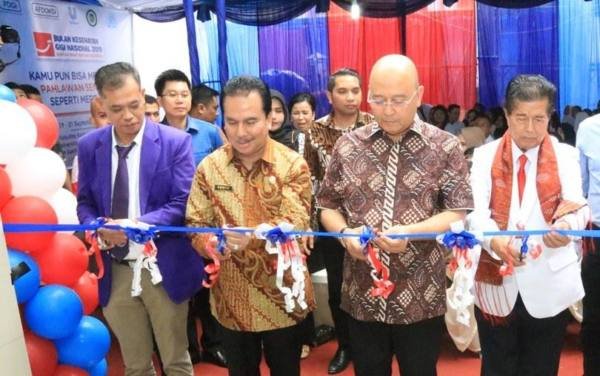 Medan, POL | Wali Kota Medan Drs H T Dzulmi Eldin S MSi MH membuka Bulan Kesehatan Gigi Nasional (BKGN) 2019 di Fakultas Kedokteran Gigi Universitas Prima Indonesia (Unpri), Jalan Pabrik Tenun Medan, Kamis (19/9/2019). Pembukaan ditandai dengan pengguntingan pita oleh Wali Kota bersama Pembina Yayasan Unpri DR dr Inyoman Ehrich Lister, Kadis Kesehatan Kota Medan dr Edwin Effendi dan segenap civitas akademika Unpri Kota Medan.