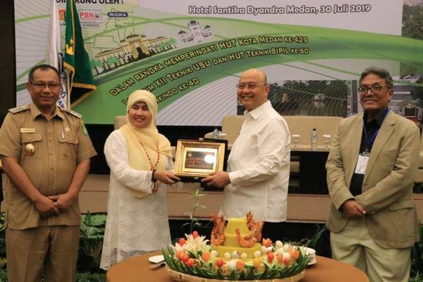 Medan, POL | Wali Kota Medan Drs H T Dzulmi Eldin S MSi MH membuka Seminar Nasional Penanganan Banjir, Transportasi dan Persampahan Kota Medan di Hotel Santika, Selasa (30/7/2019). Seminar yang digelar dalam rangka memperingati HUT Kota Medan ke- 429 sekaligus Lustrum XII Teknik USU dan HUT Teknik Sipil ke-60 serta HUT Inkindo Sumut ke-40 tersebut, bertujuan guna menyamakan persepsi serta mencari solusi dalam menghadapi masalah banjir, transportasi serta sampah di ibukota Provinsi Sumatera Utara.