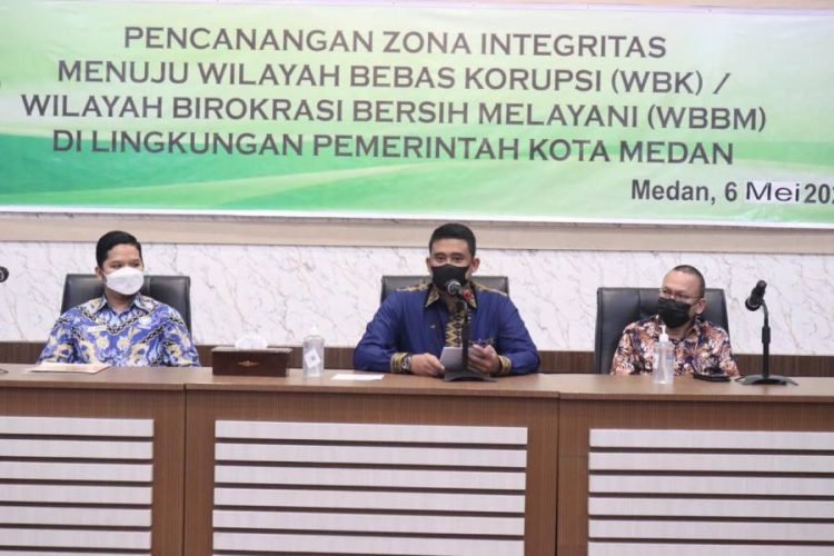 Medan, POL | Wali Kota Medan, Muhammad Bobby Afif Nasution, S.E., M.M. mencanangkan Zona Integritas Menuju Wilayah Bebas Korupsi (WBK)/Wilayah Birokrasi Bersih Melayani (WBBM) di lingkungan Pemko Medan, Kamis (6/5) di Ruang Rapat III, kantor wali kota.