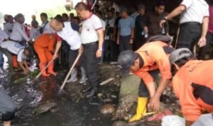Medan, POL | Wali Kota Medan Drs H T Dzulmi Eldin bersama Kapolda Sumut Irjen Pol Agus Andrianto ikut serta membersihkan Sungai Kera yang permukaannya dipenuhi sampah, terutama di bawah jembatan Jalan Bhayangkara, Kelurahan Indra Kasih, Kecamatan Medan Tembung, Selasa (25/6/2019). Pembersihan ini dilakukan sebagai salah satu upaya mendukung keinginan Wali Kota untuk mengatasi genangan air maupun banjir sekaligus menjadikan ibukota Provinsi Sumatera Utara bersih sampah.