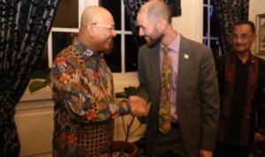 Medan POL | Wali Kota Medan Drs H T Dzulmi Eldin S MSi MH menghadiri resepsi dan Perkenalan Konsulat Jenderal (Konjen) Amerika Serikat (AS) untuk Sumatera yang baru Mr Guy Margalith di Heritage Grand Aston Hotel Medan, Kamis (12/9/2019). Acara dirangkaikan dengan peringatan 70 tahun hubungan diplomatik AS dengan Indonesia yang ditandai dengan pemasangan pin kepada Wali Kota dan H Nouval Mahyar SH MHum mewakili Gubsu.