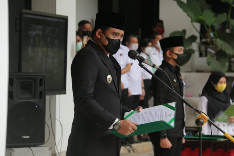Medan, POL | Wali Kota Medan, Muhammad Bobby Afif Nasution,SE.,MM melantik 77 orang Pejabat Eselon III dan IV di lingkungan Pemko Medan, Rabu (19/5/2021) di Kantor Wali Kota Medan.