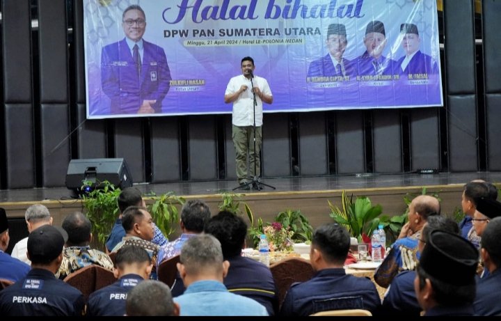Harapan tersebut disampaikan Wali Kota Medan, Bobby Nasution saat menghadiri silaturahmi dan halal bi halal DPW PAN Sumatera Utara, di Hotel Le Polonia, Minggu (21/4/2024).