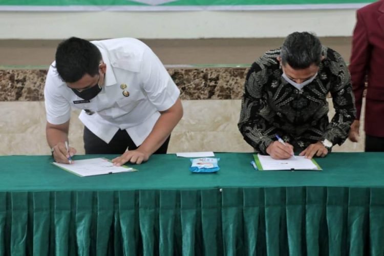 Medan, POL | Wali Kota Medan Muhammad Bobby Afif Nasution SE MM dan Rektor Universitas Islam Sumatera Utara (UISU) Dr Yanhar Jamaluddin menandatangani Nota Kesepahaman antara Pemko Medan dengan UISU di Aula Gedung Fakultas Kedokteran UISU, Jalan STM, Medan Johor, Rabu (14/4/2021). Diharapkan Nota Kesepahaman di bidang Pendidikan ini dapat meningkatkan hubungan antara Pemko Medan dengan UISU untuk kesejahteraan masyarakat Kota Medan.