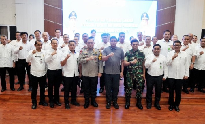 Medan, POL | Wali Kota Medan Bobby Nasution melantik pengurus Lembaga Kerjasama Tripartit dan Dewan Pengupahan Kota Medan Periode 2024-2027 di Balai Kota, Rabu (11/9/2024).