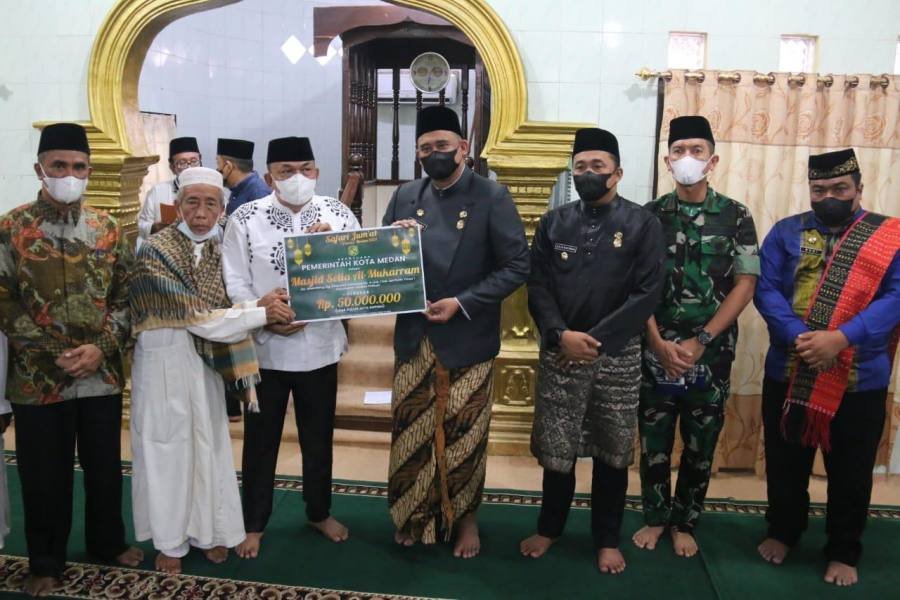 Usai melaksanakan sholat jumat berjamaah, Bobby Nasution kemudian menyerahkan bantuan pembangunan Masjid secara simbolis kepada Badan Kenaziran Masjid sebesar Rp. 50 juta dan satu unit laptop. Selain itu Bobby Nasution juga menyerahkan sertifikat pendirian Koperasi Masjid.